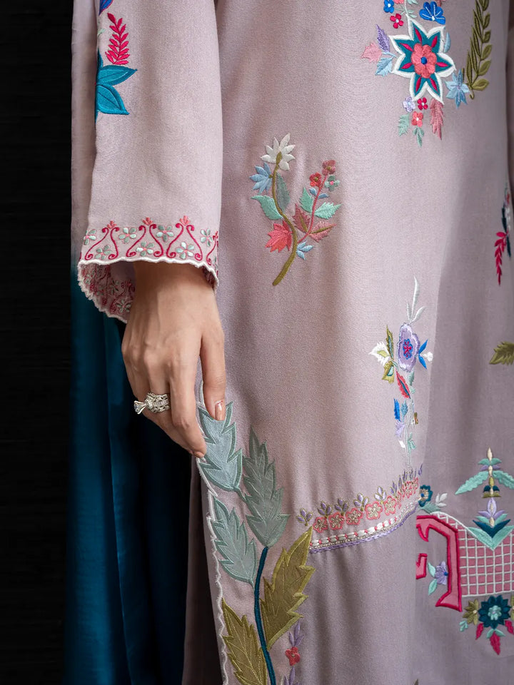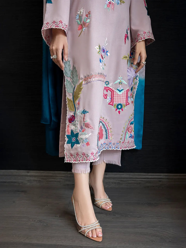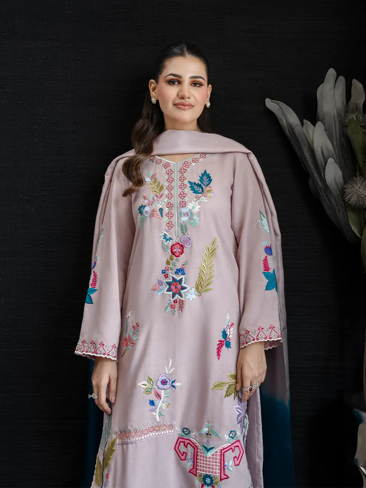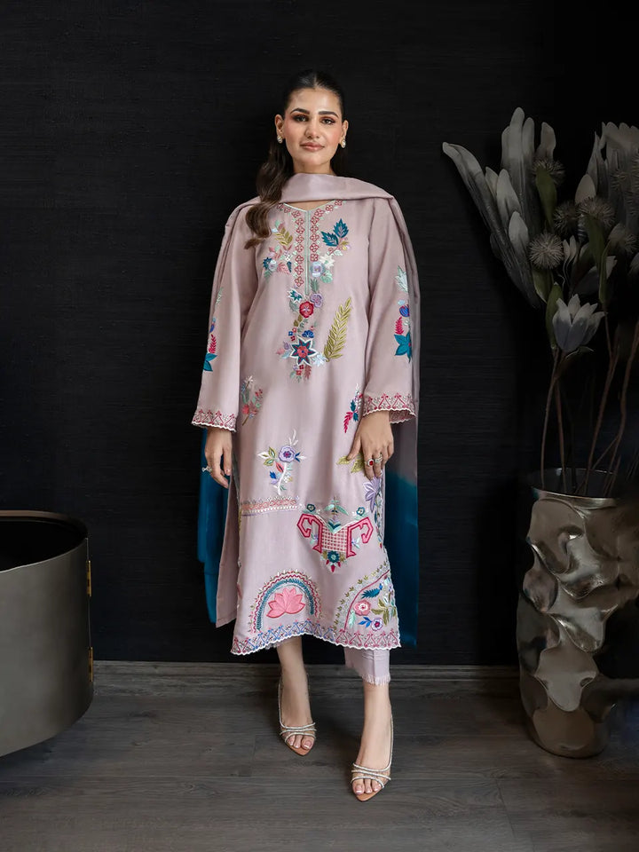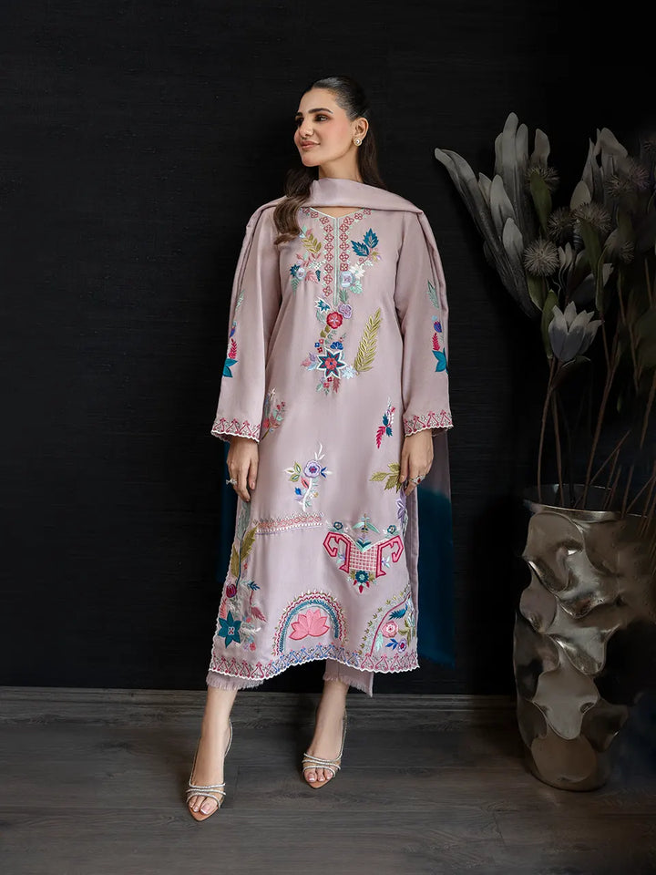 Elevate your Fall/Winter wardrobe with our In-house Premium Karandi collection, now introduced in an elegant lilac hue that exudes soft sophistication. Crafted from breathable, textured Karandi, this ensemble delivers natural grace and comfort, perfect for daytime festivities as well as refined evening gatherings.