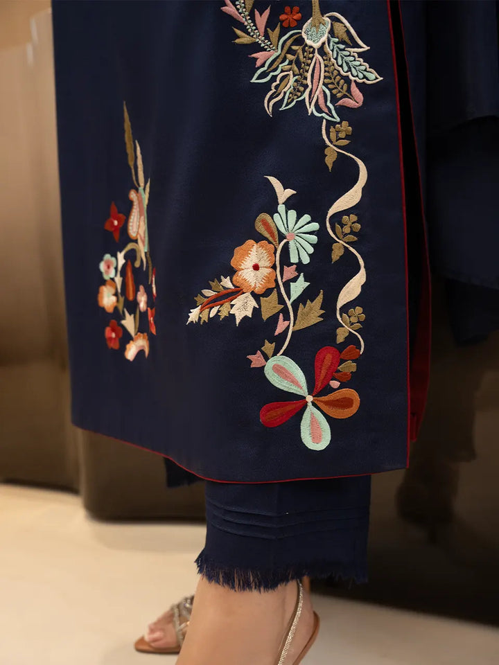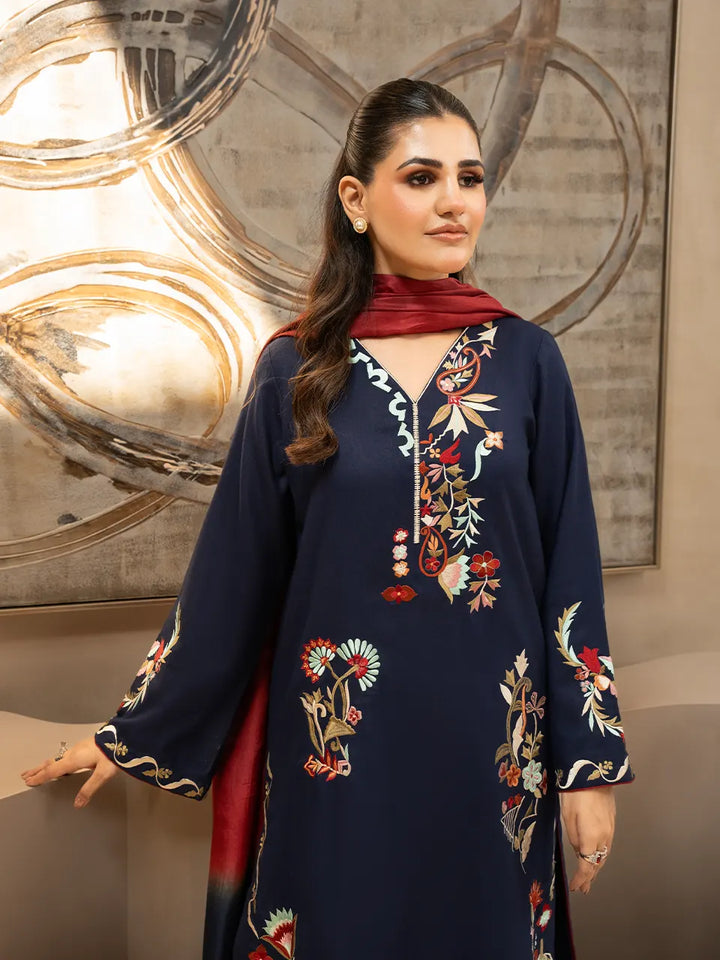 Elevate your Fall/Winter wardrobe with our In-house Premium Karandi collection, featuring a stunning dark blue ensemble that blends tradition with modern style. The breathable, textured Karandi fabric offers a natural elegance, perfect for daytime festivities and evening gatherings. Delicate hand embroidery adds a touch of sophistication, making this piece a versatile choice for any occasion.