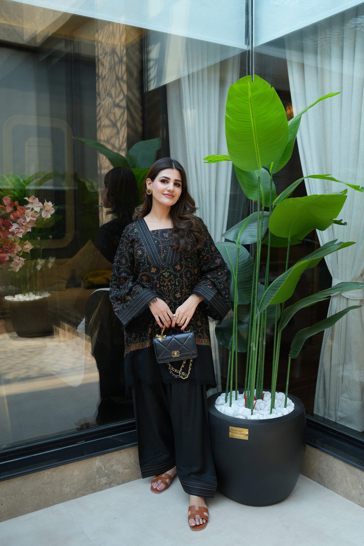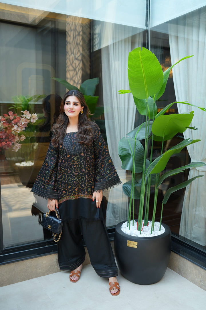 Both shirt and bottoms are made of pashmina fabric