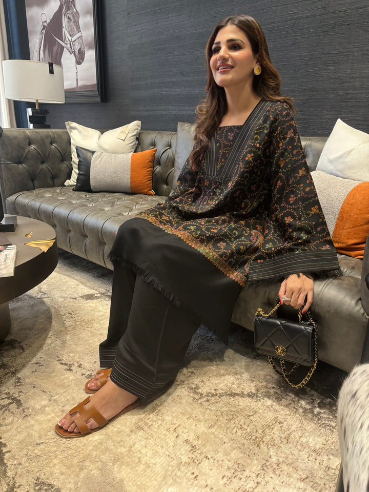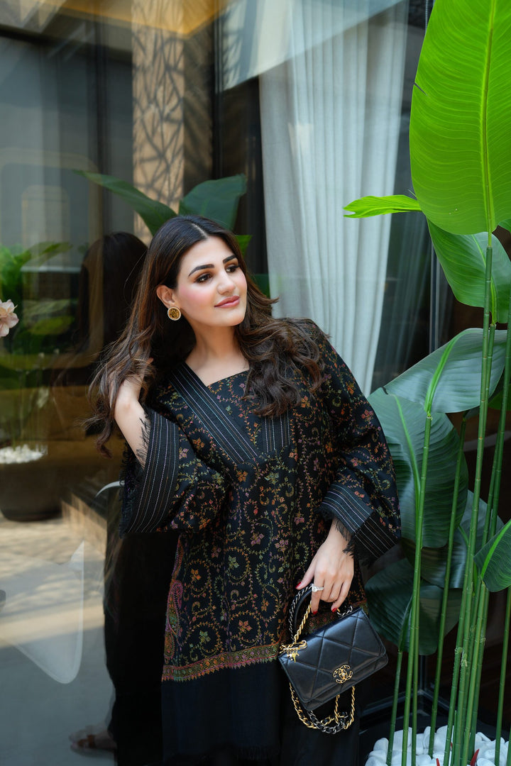 It is an exclusive Ensemble made from premium pashmina with hand embroidery posing spectacular craftsmanship and unmatched finesse of the fit.