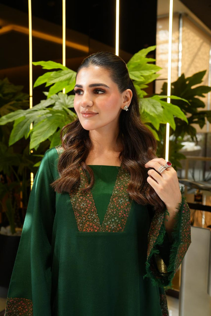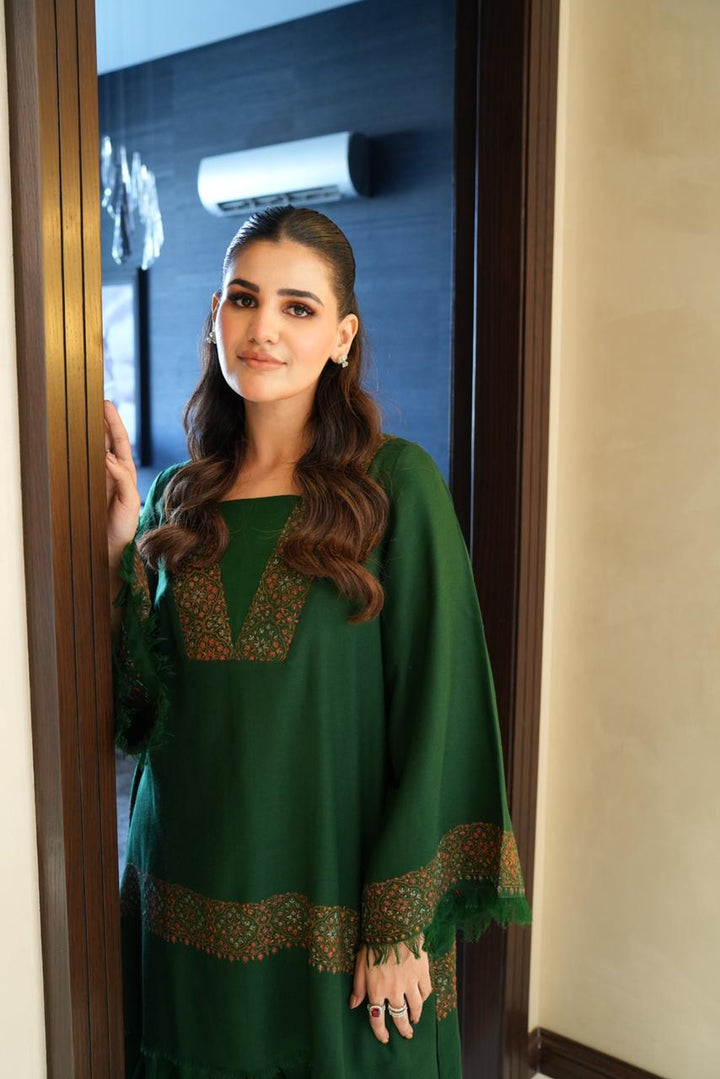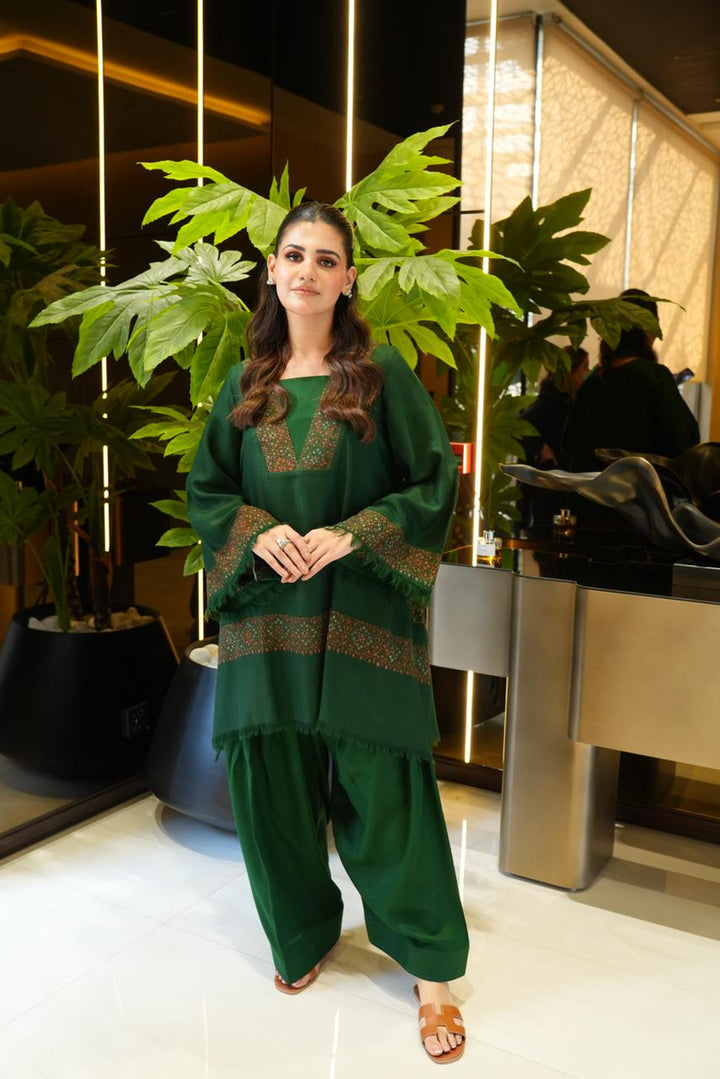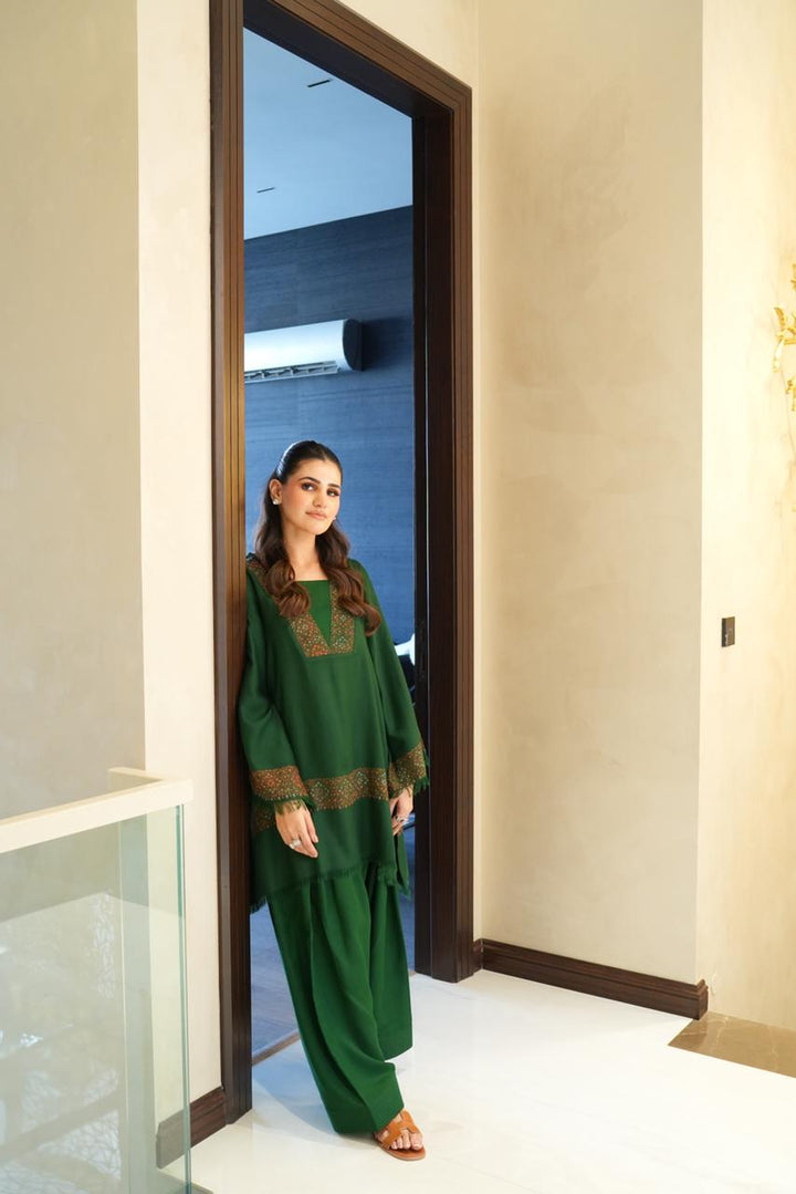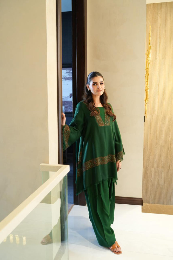 It is an exclusive Ensemble made from premium pashmina with hand embroidery posing spectacular craftsmanship and unmatched finesse of the fit.